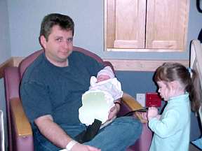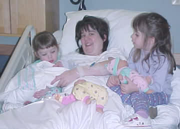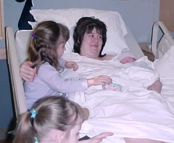 Emily and Katie say "Hi!" to their new sister.