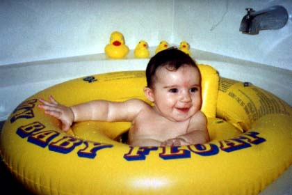 July 2 - first bites of food (diluted rice cereal)
